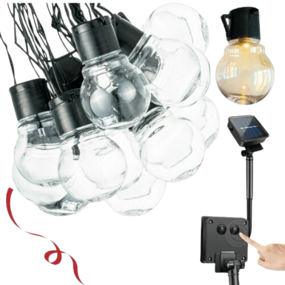 Delikatne, przezroczyste żarówki doskonale ozdobią każde miejsce. W pełni wodoodporne i bezobsługowe, dzięki czujnikowi zmierzchu i nowoczesnemu panelowi słonecznemu. 30LED o długości 6m otuli swoim światłem meble balkonowe, drewniane płoty, żywopłoty, mini drzewka, a nawet wnętrza mieszkań.